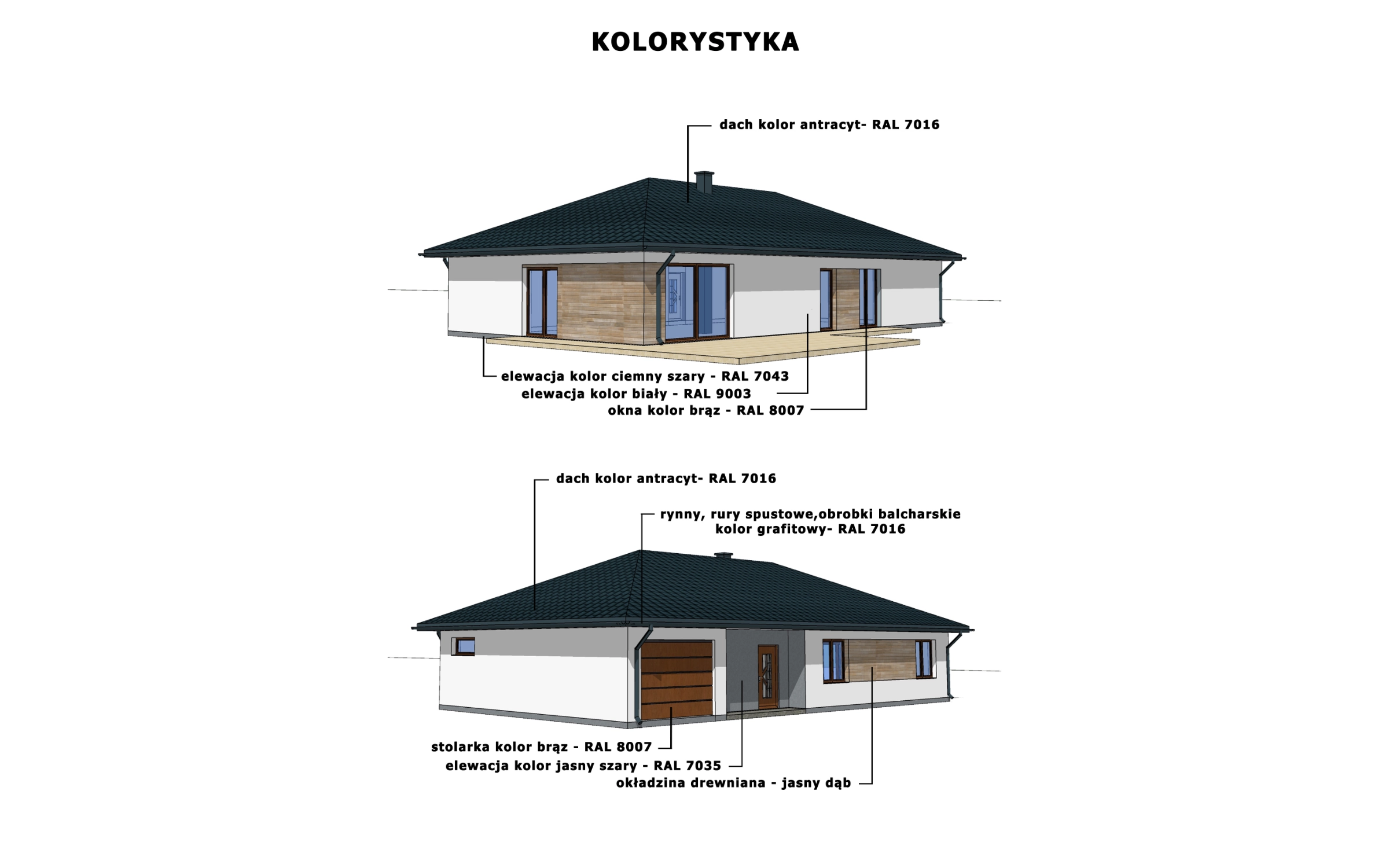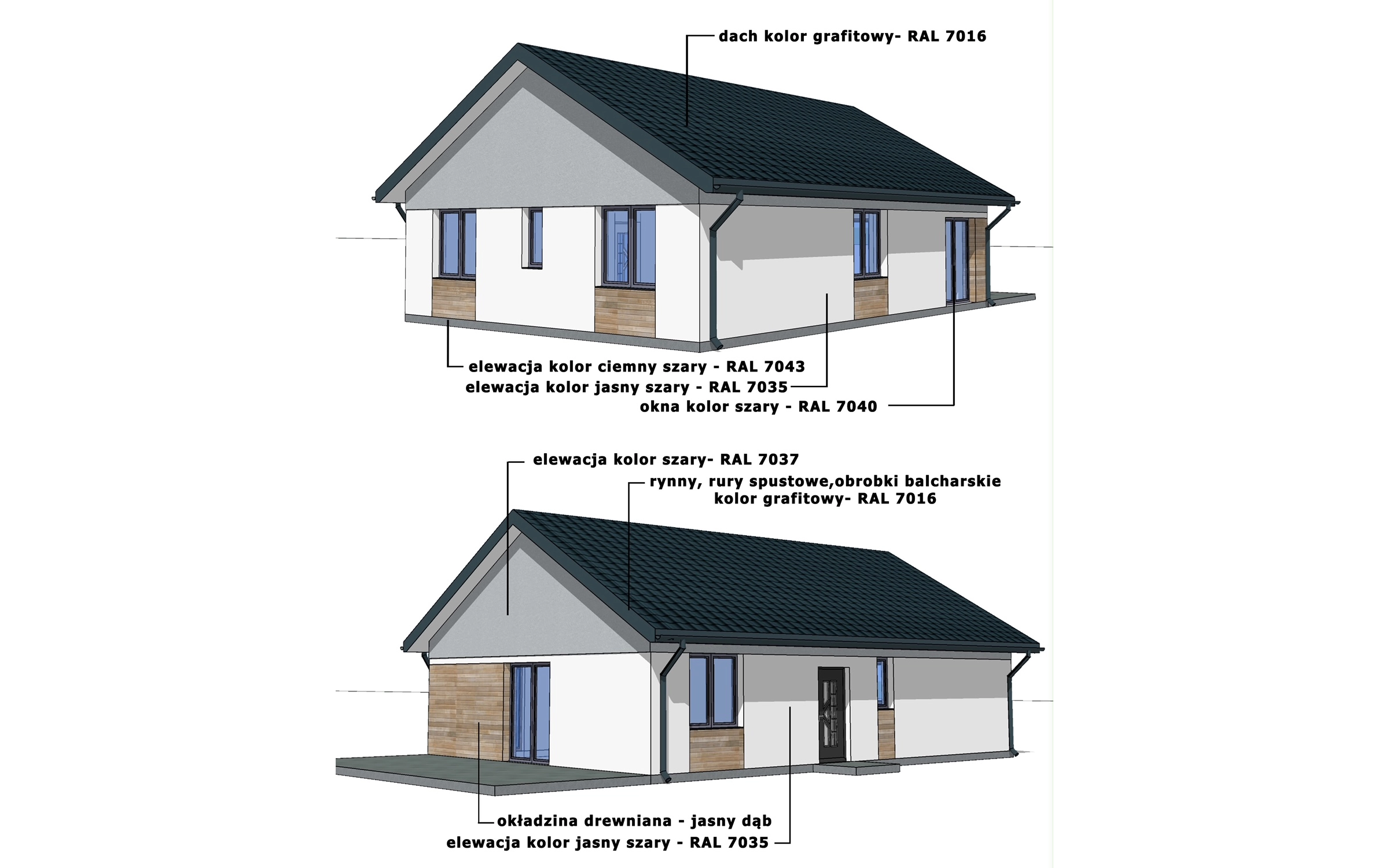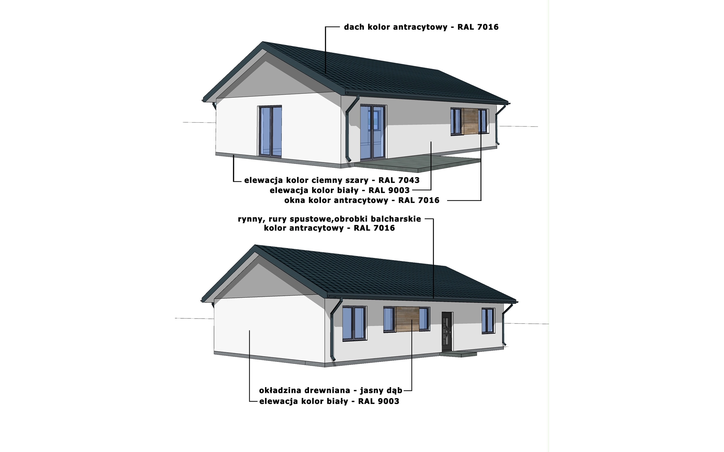 W każdym domu oferujemy możliwość wyboru dachu dwuspadowego lub kopertowego. Zaprezentowany układ ścian wewnętrznych jest poglądowy i może zostać dostosowany do indywidualnych potrzeb klienta. Dodatkowo każdy z projektów może być wyposażony w garaż 1 lub 2 stanowiskowy. Oprócz tego możemy jeszcze dodatkowo zrobić poddasze użytkowe ze stropem drewnianym, bądź z filigranu. Koszt zmian zależy od zakresu projektu i jest ustalany indywidualnie.