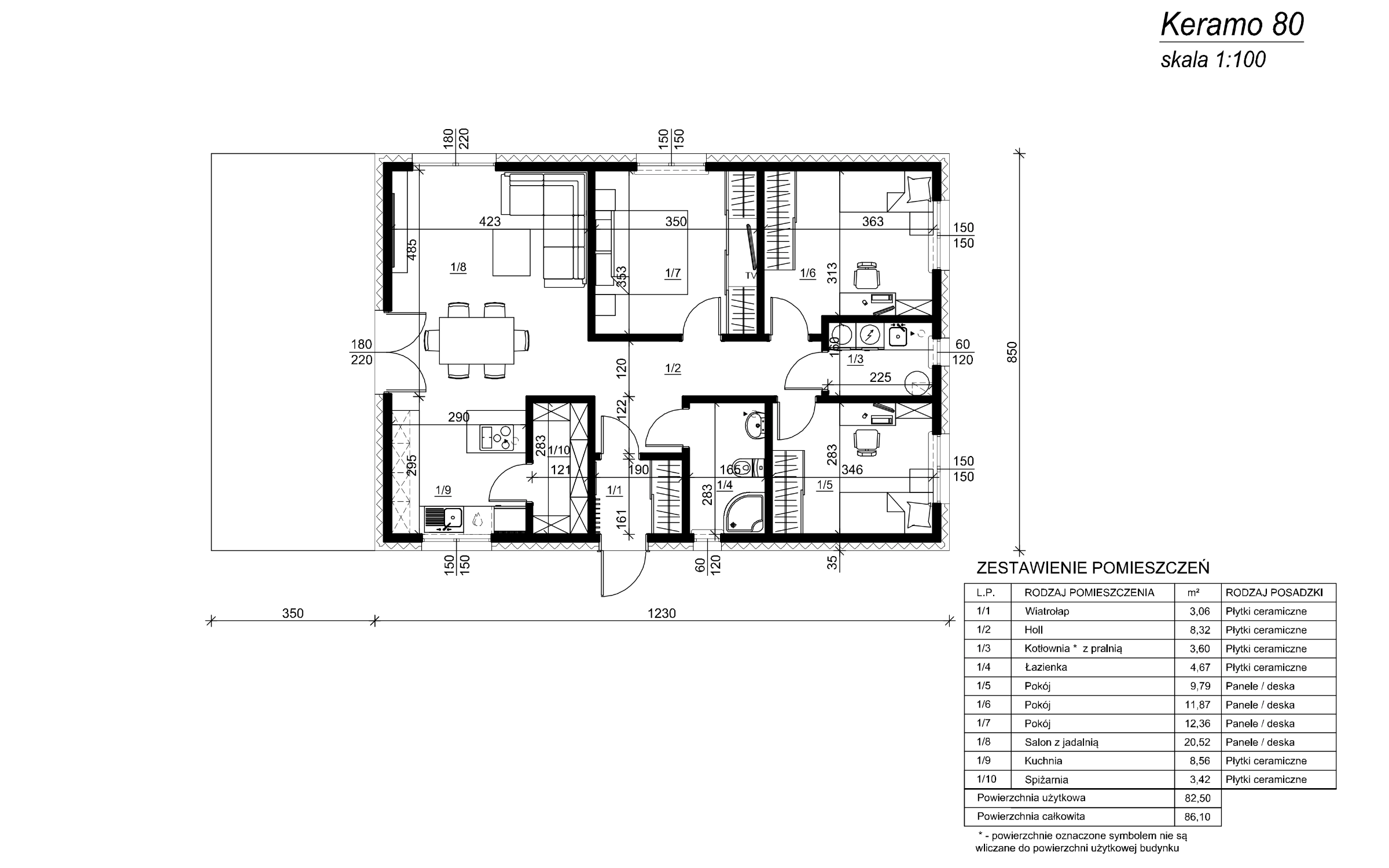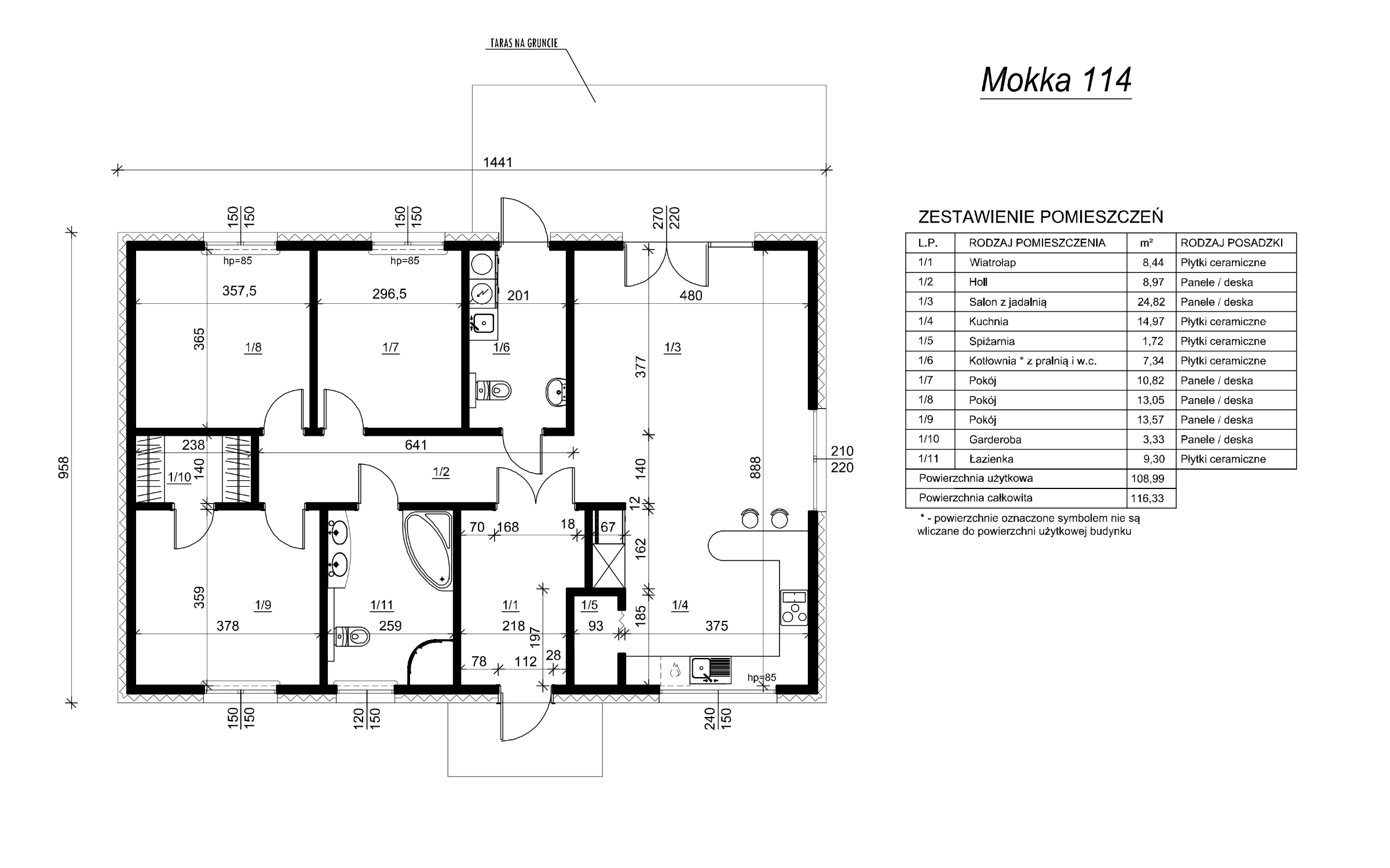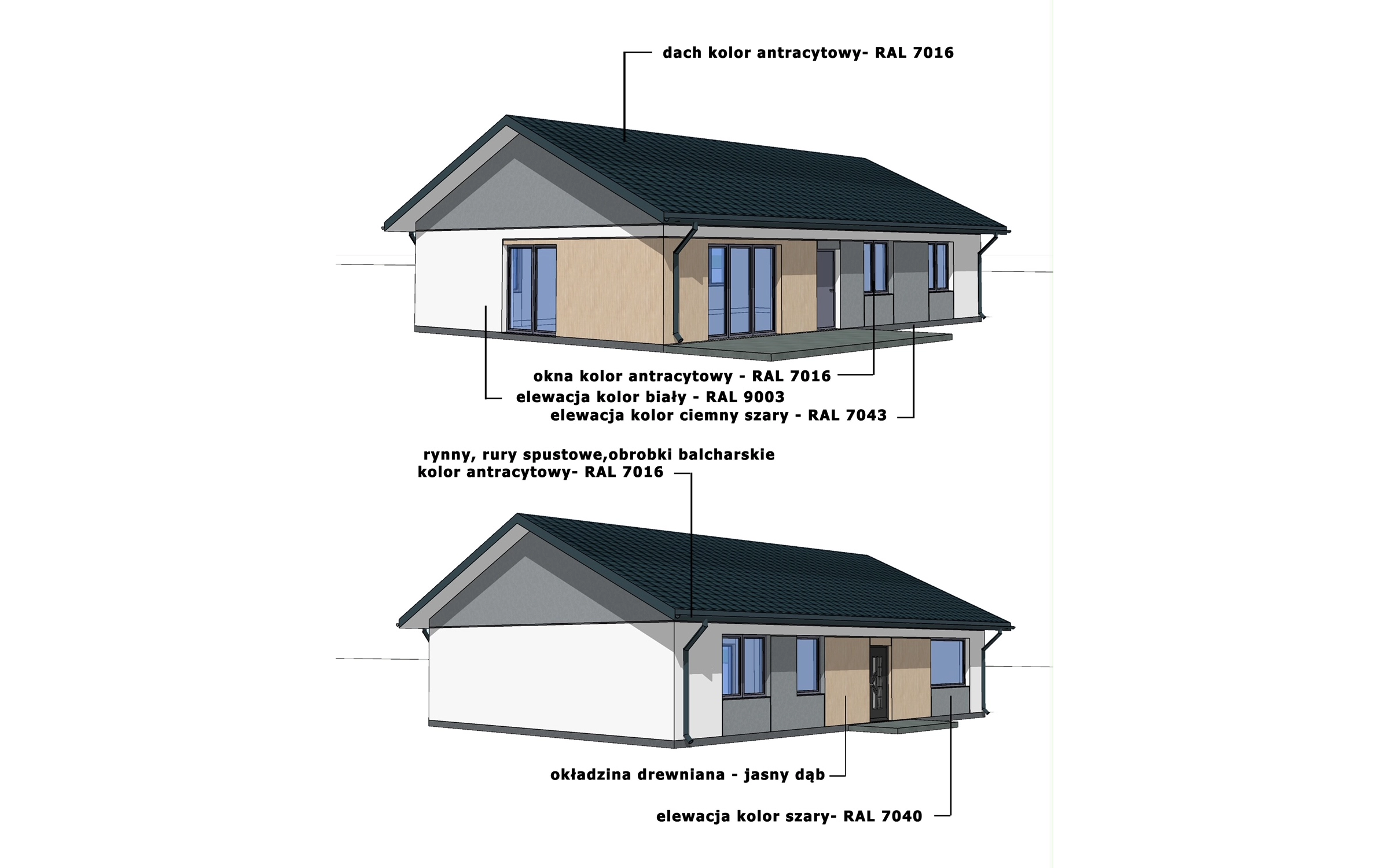 W każdym domu oferujemy możliwość wyboru dachu dwuspadowego lub kopertowego. Zaprezentowany układ ścian wewnętrznych jest poglądowy i może zostać dostosowany do indywidualnych potrzeb klienta. Dodatkowo każdy z projektów może być wyposażony w garaż 1 lub 2 stanowiskowy. Oprócz tego możemy jeszcze dodatkowo zrobić poddasze użytkowe ze stropem drewnianym, bądź z filigranu. Koszt zmian zależy od zakresu projektu i jest ustalany indywidualnie.